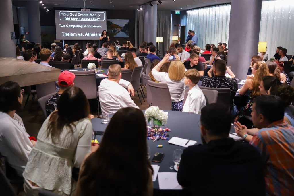 Following their arrival, on June 11, we organized a public event at the Plaza Hotel titled “Did God Create Man or Did Man Create God?”, which brought together around 100 attendees.